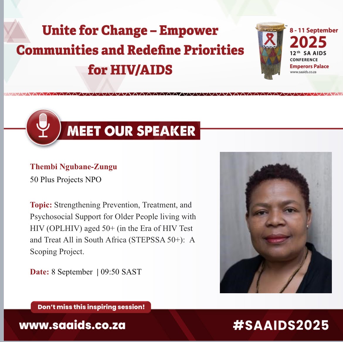 50 Plus Projects NPO is proud to announce its selection to present at the 2025 South African AIDS Conference.